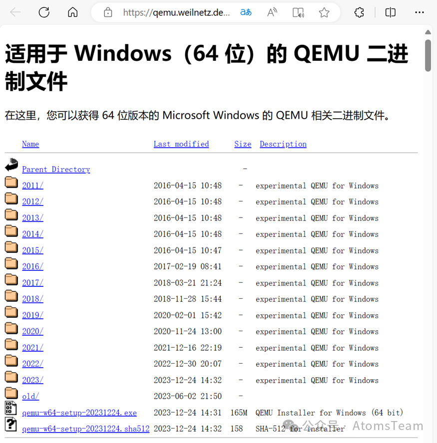 直接从官网下载(https://qemu.weilnetz.de/w64/)最新版本 qemu-w64-setup-20231224.exe进行安装