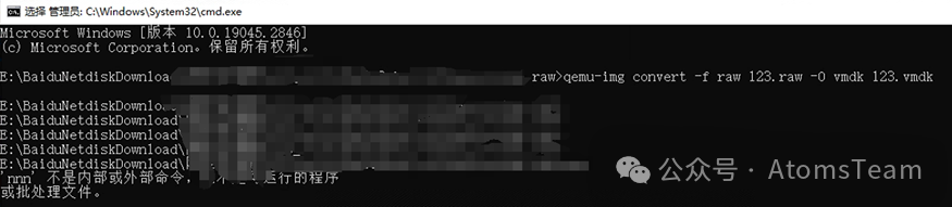 在raw镜像所在目录下打开cmd qemu-img convert -f raw 要转换的.raw -O vmdk 生成的.vmdk