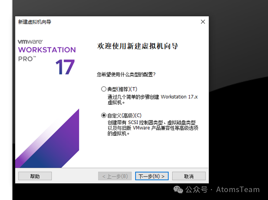 选择自定义 =>>下一步