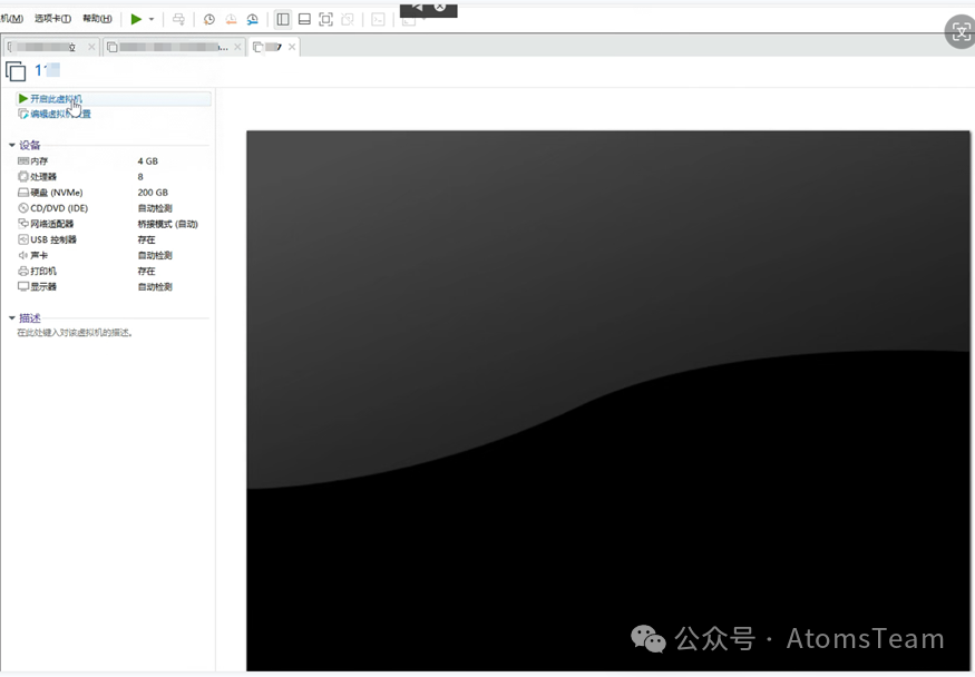 此时看到创建好的虚拟机,开启即可