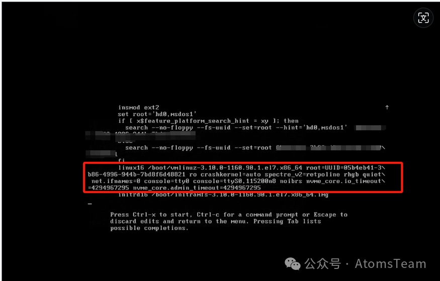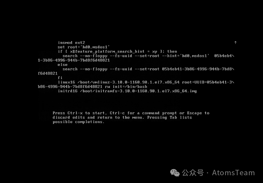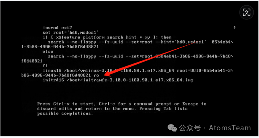 找到linux开头的一行,把ro后面的部分全部删掉,改为rw init=/bin/bash