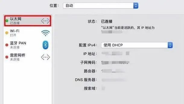 2、在左侧菜单中,选择你当前使用的网络连接(如Wi-Fi或以太网)。在右侧窗口中,当前连接的状态下方会显示你的IP地址。