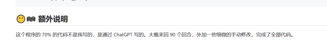 整个项目有意思还在于,作者说,项目的 70% 的代码都是通过 ChatGPT 写的。