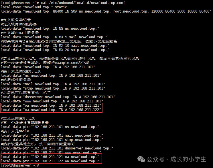 local-data-ptr:"192.168.211.121 oa.newcloud.top."local-data-ptr:"192.168.211.122 oa.newcloud.top."