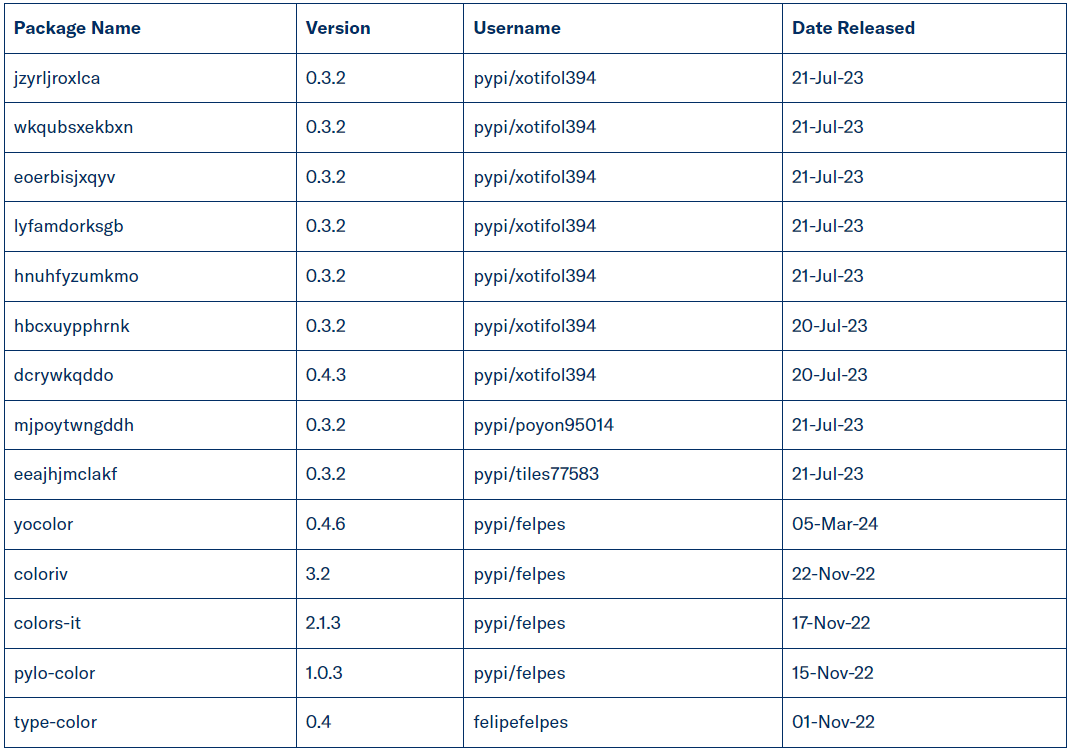 攻击者最近一次上传是今年3月一个名为 “yocolor” 的软件包。