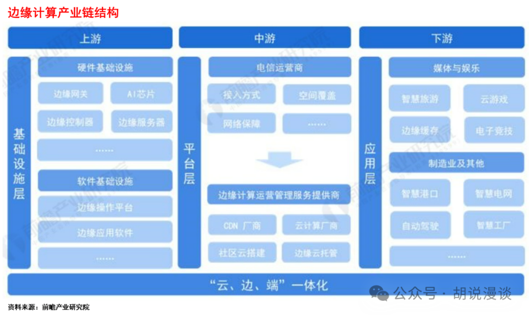 从产业链结构来看,边缘计算产业链可按上、中、下游三个部分进行划分。