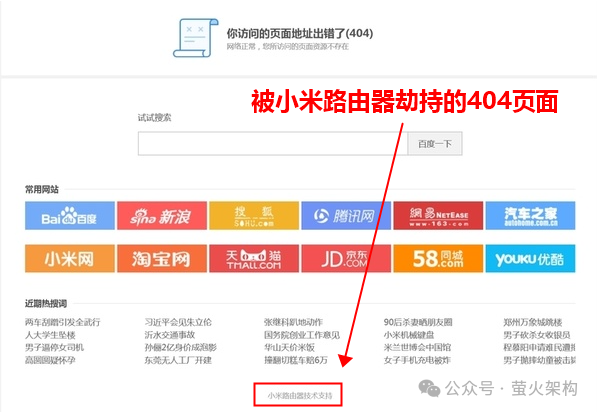 一些网龄比较大的同学可能还有这样的记忆:网站页面找不到的时候,浏览器会跳转到一个运营商或者路由器厂商的网址导航页面;家里的宽带到期的时候,浏览器网页右下角会弹出续费通知。