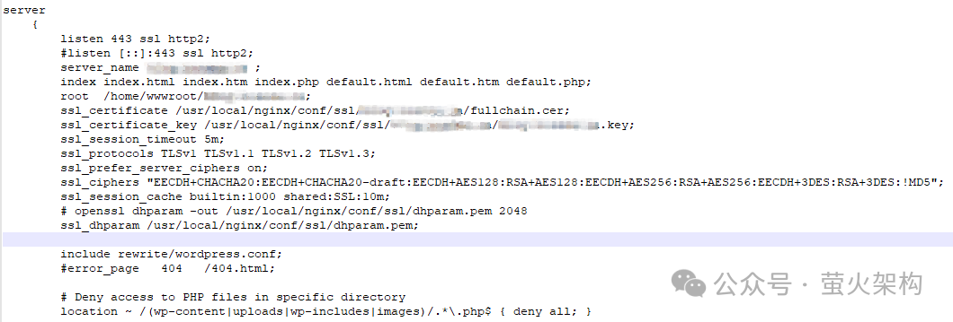 在Web服务器配置中禁用已知不安全的SSL/TLS版本(如TLS 1.0和1.1)和弱加密套件,选择使用强加密算法,如AES_GCM或ChaCha20。
