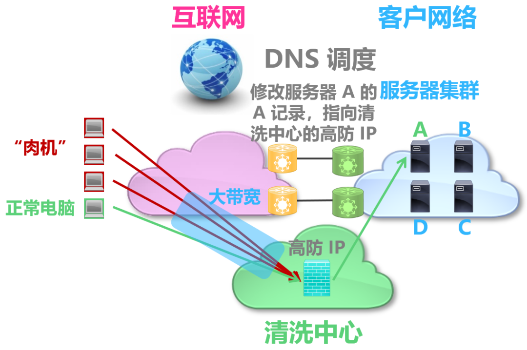 图片:DDoS 防护模式 ,通过路由调度实现