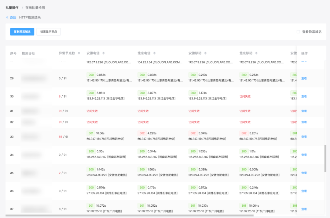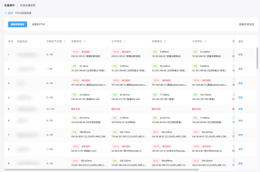 复制/查看异常域名:支持一键复制/查看存在未响应节点的域名。
