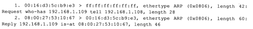 sudo tcpdum -i eth0 -ent '(dst 192.168.1.109 and src 192.168.1.108) or (dst 192.168.1.108 adn 192.168.1.109)'