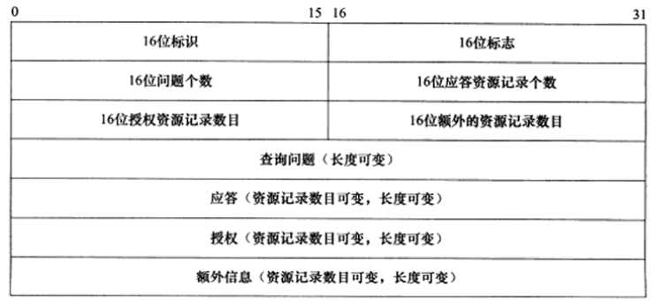 接下来的4个字段则分别指出DNS报文的最后4个字段的资源记录数目。对查询报文而言,它一般包含1个查询问题,而应答资源记录数、授权资源记录数和额外资源记录上则为0。应答报文的应答资源记录数则至少为1,而授权资源记录数和额外资源记录数可为0或非0。