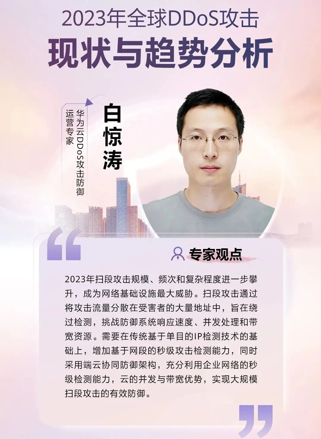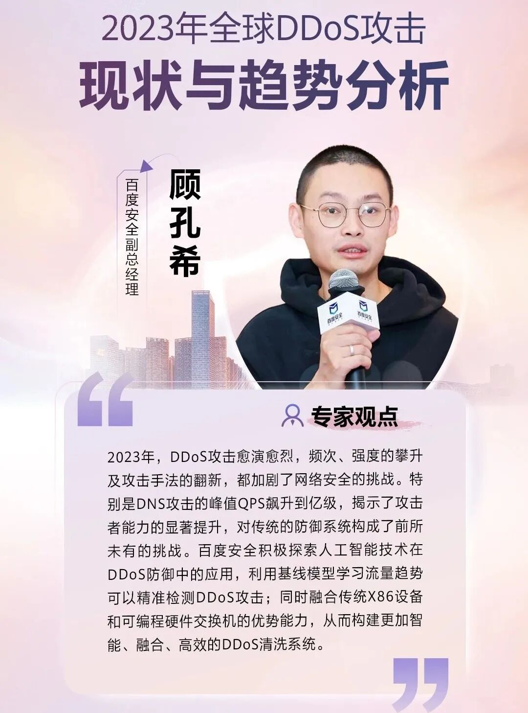 百度安全副总经理顾孔希表示,2023年,DDoS攻击愈演愈烈,频次、强度的攀升及攻击手法的翻新,都加剧了网络安全的挑战。特别是DNS攻击的峰值QPS飙升到亿级,揭示了攻击者能力的显著提升,对传统的防御系统构成了前所未有的挑战。百度安全积极探索人工智能技术在DDoS防御中的应用,利用基线模型学习流量趋势可以精准检测DDoS攻击;同时融合传统X86设备和可编程硬件交换机的优势能力,从而构建更加智能、融合、高效的DDoS清洗系统。