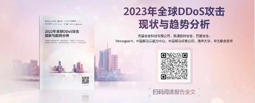 近日,百度安全联合华为、天翼安全科技有限公司、联通数科安全、Nexusguard、中国移动云能力中心、中国移动卓望公司、清华大学共同发布《2023年全球DDoS攻击现状与趋势分析》(以下简称《报告》)。报告从DDoS攻击态势、僵尸网络态势、攻击源态势及典型攻击维度,辅以现网真实数据,展现了2023年DDoS攻击的全景图。报告的发布旨在为全球DDoS防御带来借鉴和指导,助力全行业进入DDoS智能化防御时代。