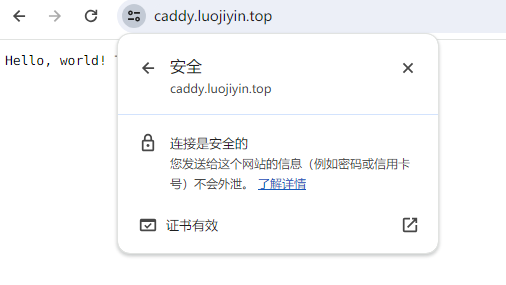 Caddy 直接输出一个静态页面,验证签发是否成功。