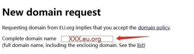 填写想申请的域名,后缀是eu.org。