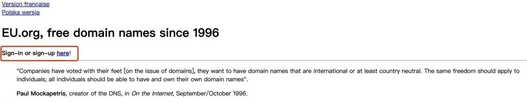 打开网址https://nic.eu.org/,点Sign-in or sign-up here