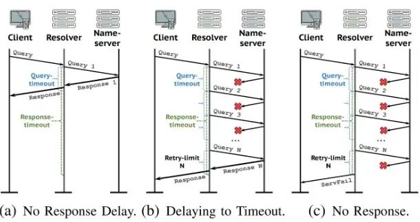 3.集中DNS响应:在接近每个查询的超时时,利用DNS的可靠性增强机制,将所有响应集中在目标服务器上,产生周期性的脉冲流量。