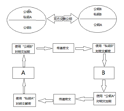 (2) A 的私钥保密,A 的公钥告诉 B;B 的私钥保密,B 的公钥告诉 A。