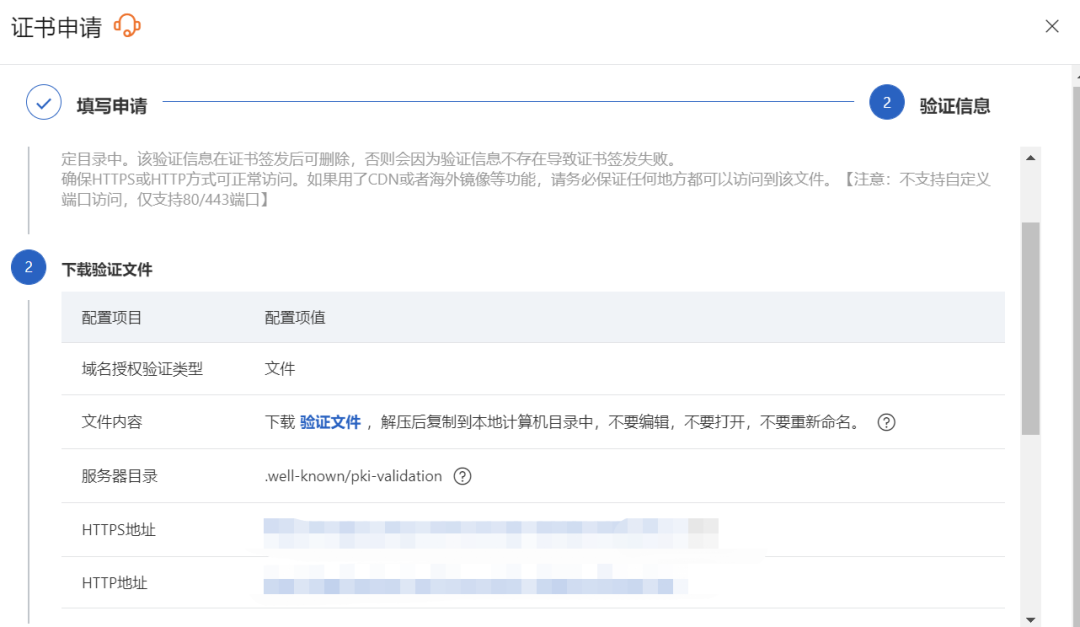 文件验证会下载一个文本文件,要求你去改服务器代码,让对应url可以访问到这个校验的文本即可,然后就会成功下发证书。