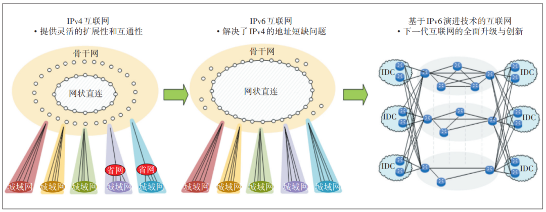 IPv6协议不仅解决了IPv4协议的地址短缺问题,同时也对IPv4协议进行了大量的简化和优化,提升了IPv6网络的效率,但目前网络和互联网应用对IPv6的支持的进展相对缓慢。2018年,IETF提出IPv6段路由(Segment Routing IPv6,SRv6)技术架构,IP网络开始向第3代基于IPv6演进技术的互联网发展,该技术也成为IPv6向可编程网络演进的核心技术。经过近20年的发展,IPv6逐步进入规模化部署和应用阶段,各种IPv6演进技术也在网络中被广泛应用。