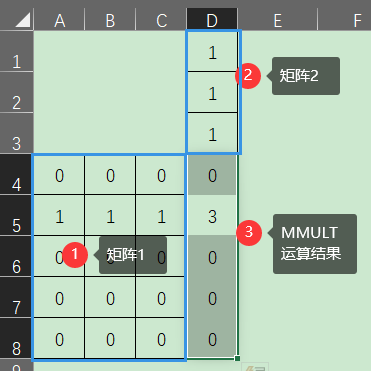 这里使用MMULT函数并非最佳选择,但它说明了MMULT函数最重要的一个特性:它可以将一个多行多列的数据矩阵(引用或数组),聚合为一个单列或单行结构。就过去很长很长很长一段时间的函数体系而言,这特性无人可代替(现在WPS/Excel2024+版本可以用BYROW/BYCOL等函数代替,这几个新函数的语法和典型用法可以在公众号Excel星球搜索栏中搜索)。