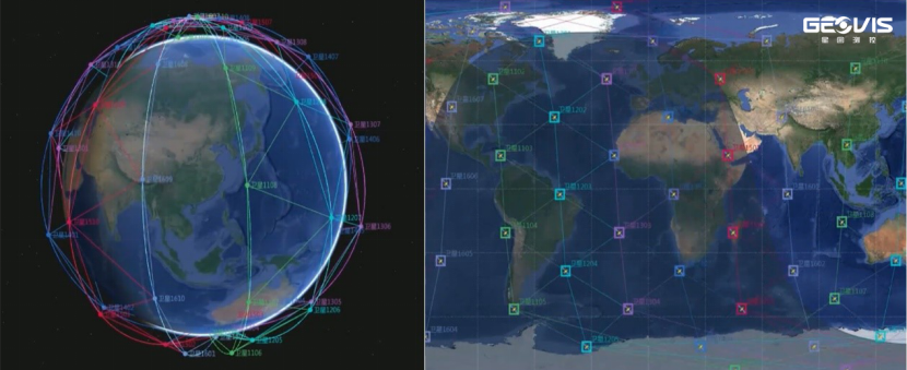 地月空间轨道任务仿真系统以公司核心产品洞察者为基础,以高精度算法库、海量目标库等一系列计算工具、场景数据为支撑,构建互联网星座通信支援仿真系统,快速搭建星座部署及构型保持、星间链路运行管理、天基资源协同分发等仿真场景,综合考虑星座碰撞预警及构型保持、星地星间通信中断等情况,突破星座变轨控制及相位捕获策略、星间网络拓扑路由时隙算法、星地星间多链路协同分发等关键技术,完成对大规模互联网星座及信关站星地星间通信传输的高精度仿真,并在项目中实现了互联网星座通信支援仿真技术的工程化应用验证,能够针对不同用户需求提供一系列定制化开发服务。