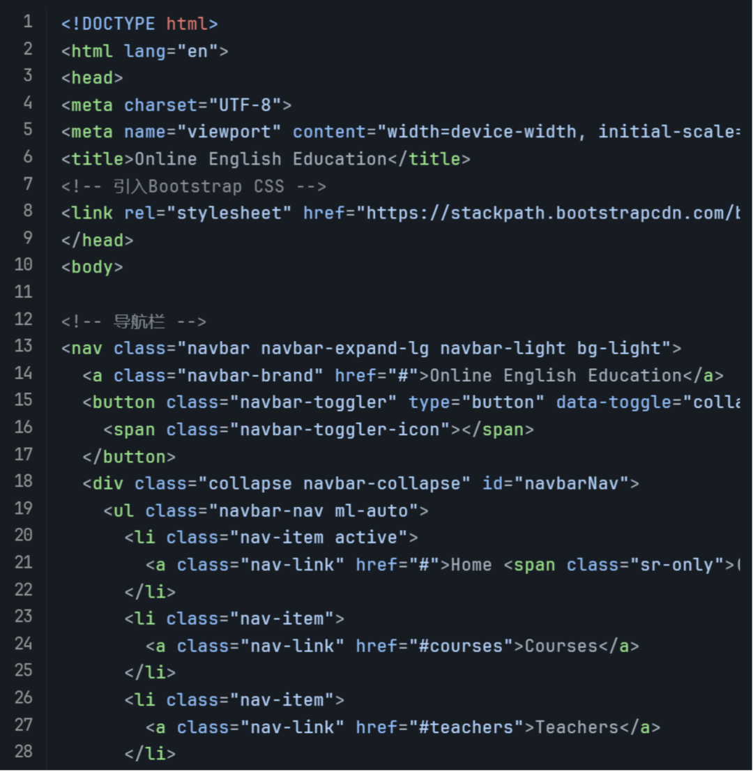 接着,我又继续对天工AI编程提出了更具体的需求,利用它帮我调整生成网站的页面布局,输入:使用 Bootstrap,实现上述网站的页面布局,左侧为教学内容展示区,中间是”选课”按钮,右边是老师展示区。