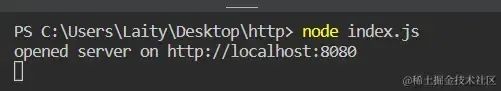 然后随便准备两张图片就可以了,我们在项目的跟目录使用 node index.js 来启动项目。如下图提示,就表示启动成功,然后我们通过浏览器访问 http://localhost:8080/ 就能看到我们的页面了。