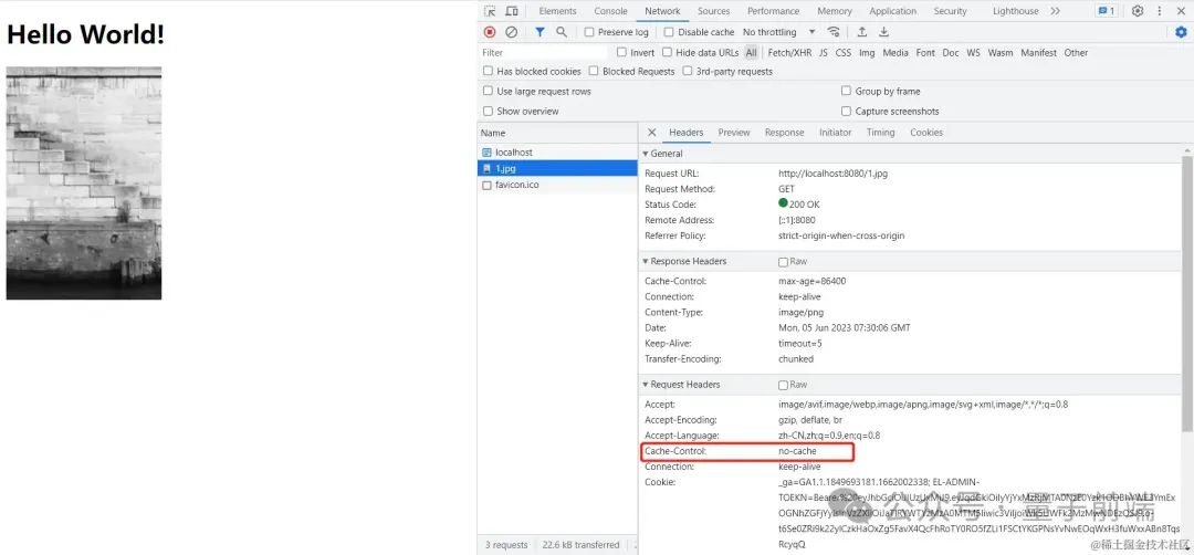 强制刷新后就能看到,我们替换的图片生效了,请求头中也带上了 Cache-Control: no-cache 属性。