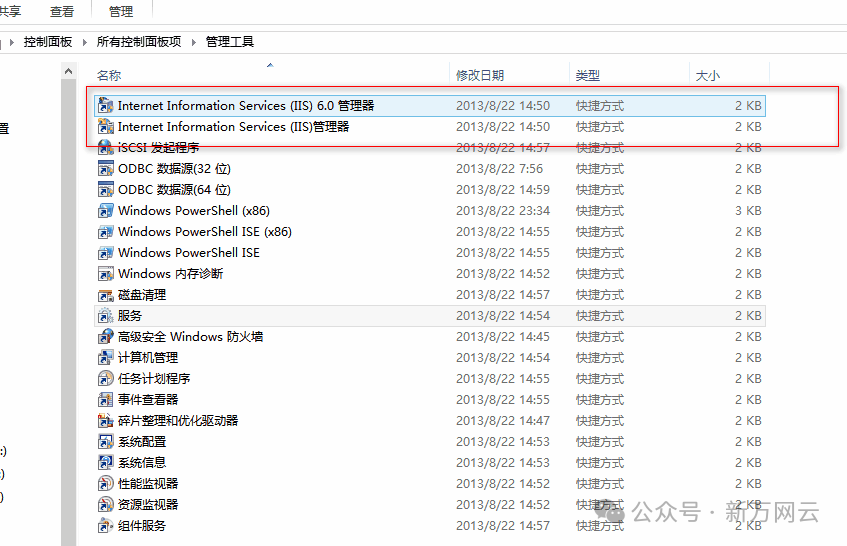 由于我的电脑已将安装了IIS服务所以找不到了,不知道你电脑有没有安装可以在 控制面板所有控制面板项管理工具中查看