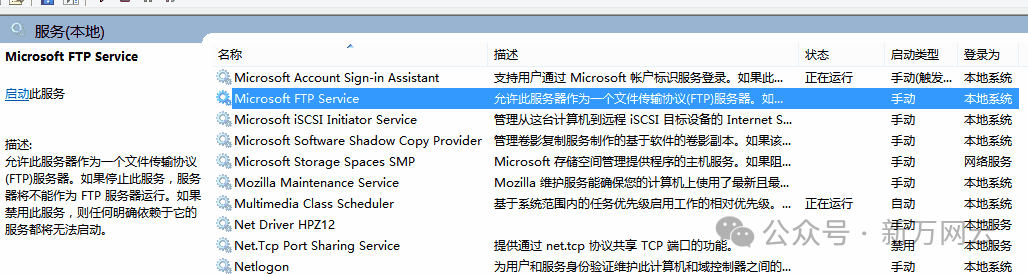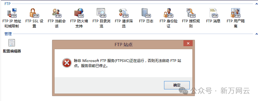 提示:除非 Microsoft FTP 服务(FTPSVC)正在运行,否则无法启动 FTP 站点。服务目前已停止。