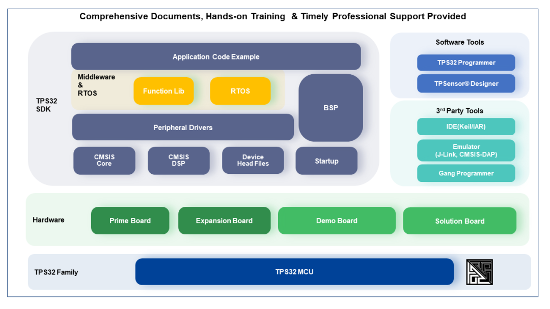 TPS32 SDK提供了简单易用的API,高效的底层驱动,针对特定应用(比如触摸)的代码库,丰富的参考例程以及基于Doxygen格式的API文档,让嵌入式代码开发变得更加简单。