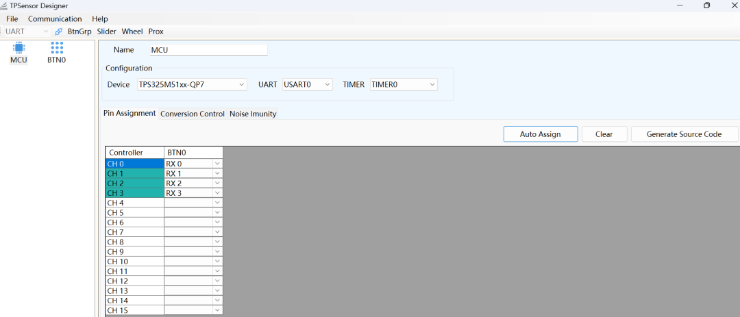 - 创建和配置TPSensor电容触摸组件(如按键、滑条、圆环、接近感应),对应触摸通道