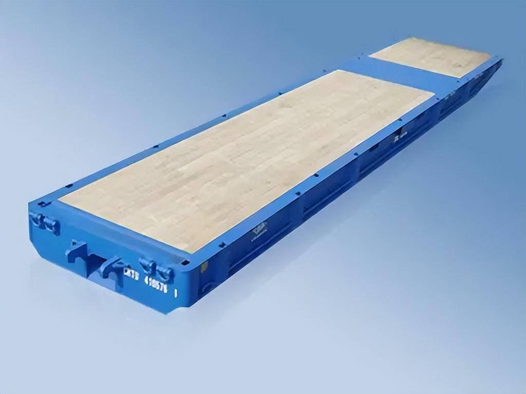 (4)平台集装箱:在框架集装箱的基础上去掉两端,形似平板铁路货车,适合装载超高货物、超重货物、洁净货物、长货物、易腐烂货物。货物、脏东西等