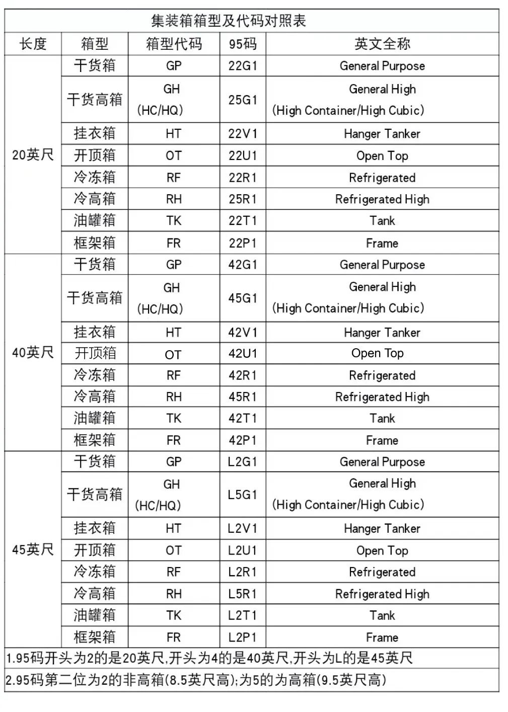 (3)根据95码第一位数字,可以判断集装箱的长度。数字2表示20英尺,数字4表示40英尺,开头L表示45英尺。