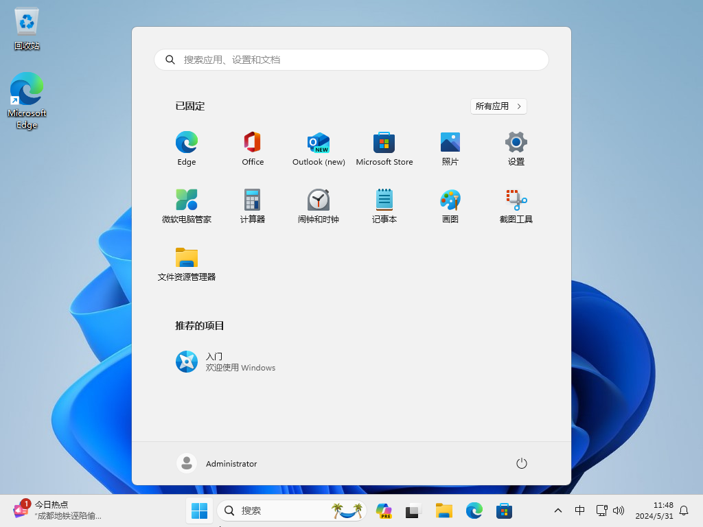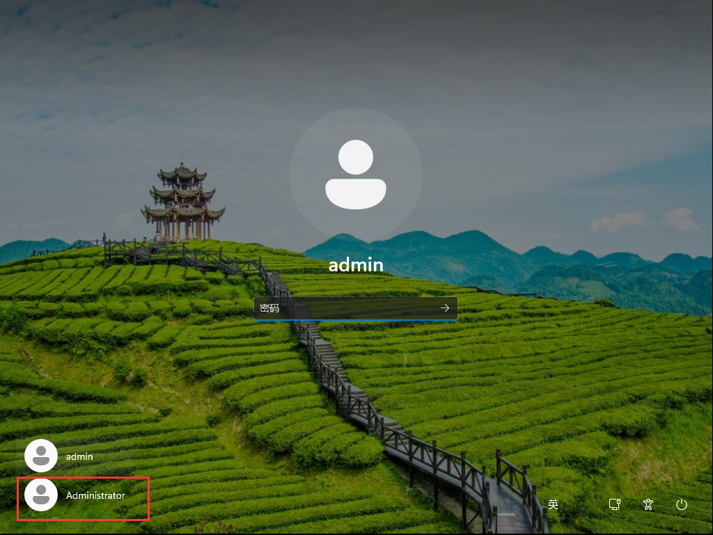 然后关掉命令行窗口,过一会,可以看到administrator账号在左下角显示出来了。我们点击登录。