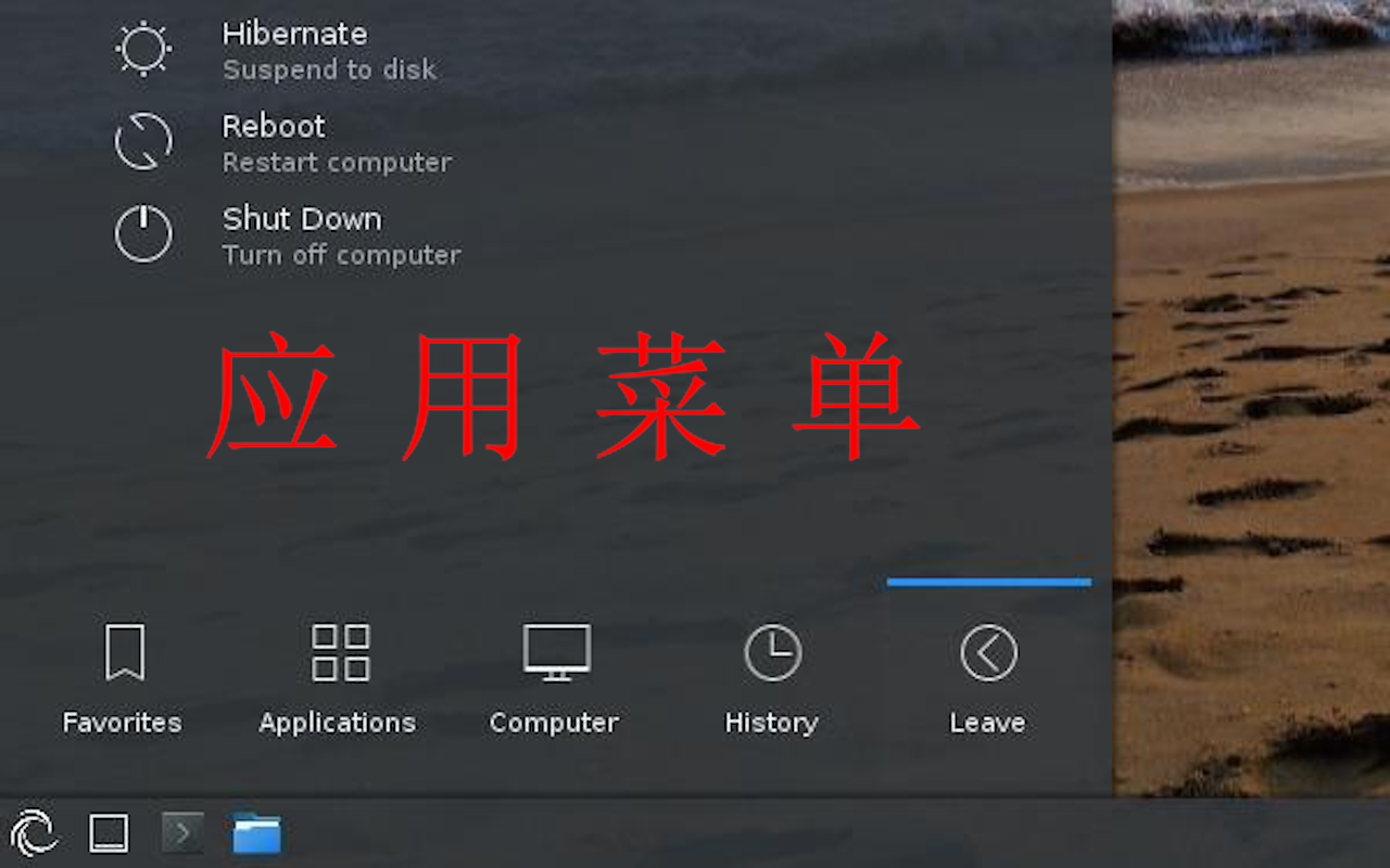在KDE 桌面上,关机按钮也位于应用程序菜单: 中