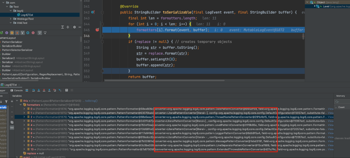 在MessagePatternConverter.format()方法中对日志消息进行格式化,其中很明显的看到有针对字符”KaTeX parse error: Expected ‘}’, got ‘EOF’ at end of input: …连着判断,等同于判断是否存在”{“,这三行代码中关键点在于最后一行