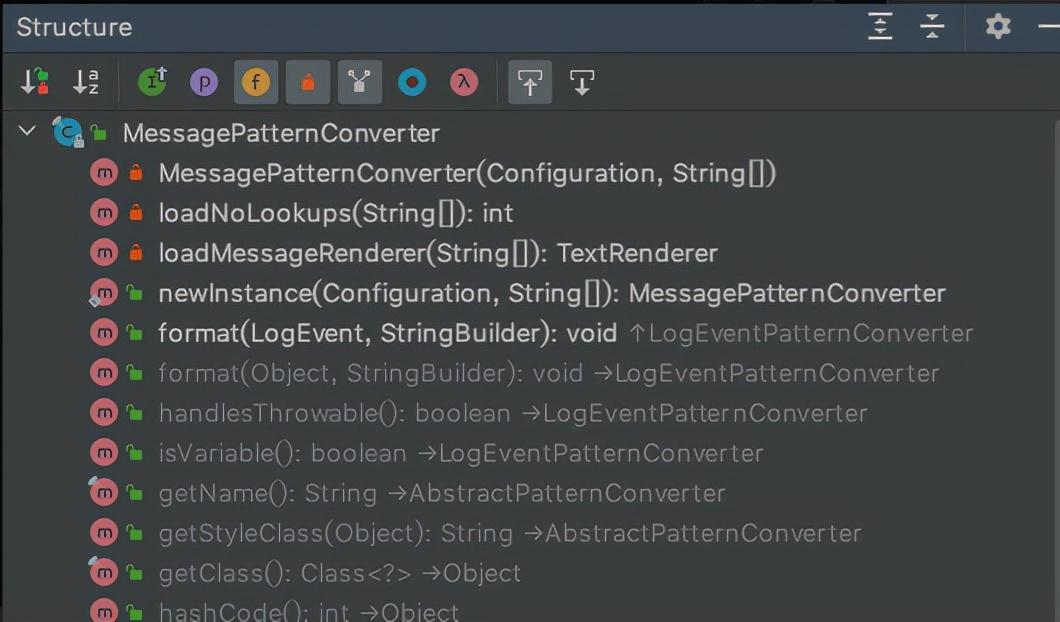 首先在这次补丁中MessagePatternConverter类进行了大改,可以看下修改前后MessagePatternConverter这个类的结构对比