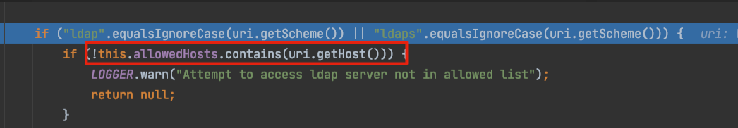 当判断以ldap开头的时候,就回去判断请求的host,也就是请求的地址,白名单内容如下所示