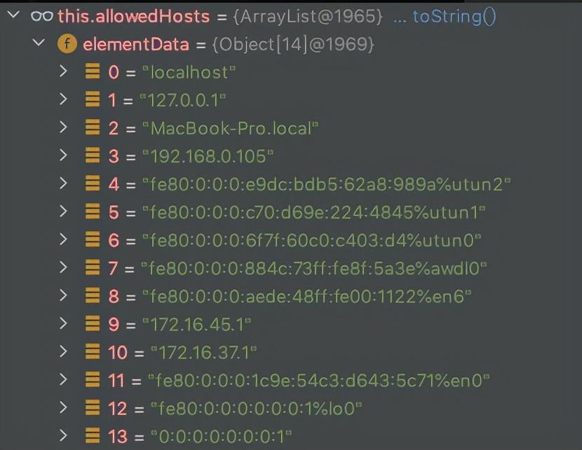 可以看到白名单里要么是本机地址,要么是内网地址,fe80开头的ipv6地址也是内网地址,看似想要绕过有些困难,因为都是内网地址,没法请求放在公网的ldap服务,不过不用着急,继续往下看。