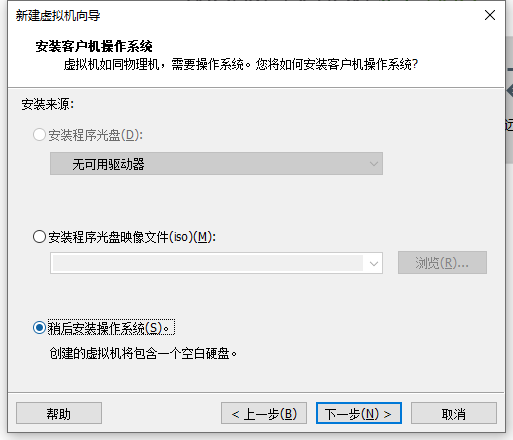 (3) 选择“稍后安装操作系统”并继续下一步。
