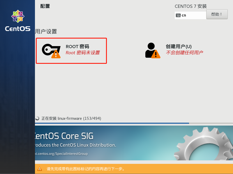 (10) 在安装过程中,点击“ROOT密码”为root用户设置密码。