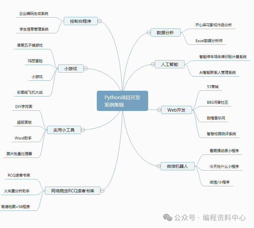 内容包括:学生信息管理系统、企业编码生成系统、简易五子棋游戏(控制台版)、玛丽冒险、彩图版飞机大战、DIY字符画、超级画板、Word助手、图片批量处理器、RCQ读者书库、火车票分析助手、高德地图+58租房、开心麻花影视作品分析、Excel数据分析师、智能停车场车牌识别计费系统、A1智能联系人管理系统、51商城、BBS问答社区、甜橙音乐网、智慧校园测评系统、看图猜成语小程序、今天吃什么小程序、微信机器人。