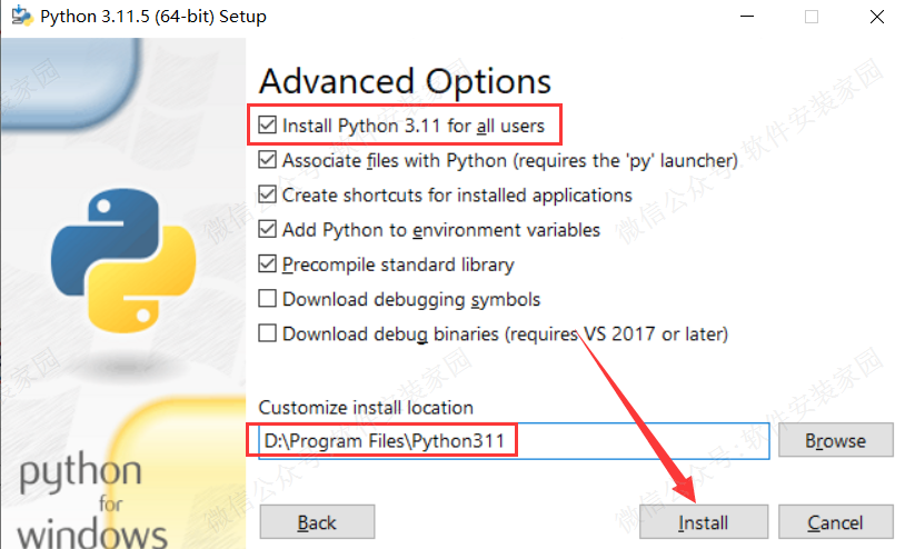 6.选中“install Python 3.12 for all users,选择软件安装路径,点击“Install”