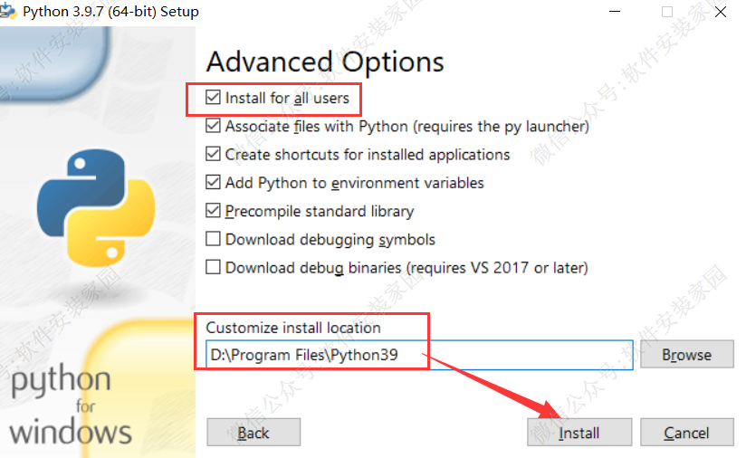6.选中“install for all users,选择软件安装路径,点击“Install”