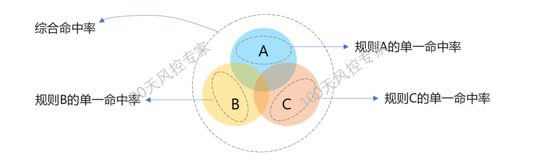 单一命中率:只有规则A命中,但其它并行规则均未命中的数量占总数量的比例 -